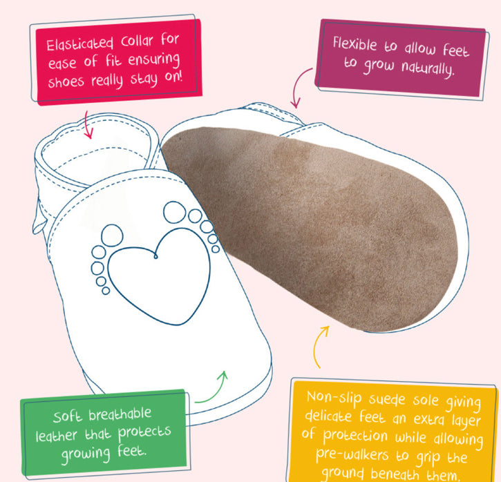 Suede soles are ideal for indoor use, crawlers, and pre-walkers.
