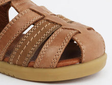 This classic summer sandal has a closed toe for added protection, while open sides provide airflow and breathability. In a unique caramel colourway, this sandal makes an elegant addition to any outfit - from school uniforms to their Sunday best. The Roam sandal boasts an ankle strap fastening for a secure, adjustable fit, padded collar for comfort and our signature brass icon rivets add sophistication. Suitable for confident walkers, this style fits average width feet, and is true to size.